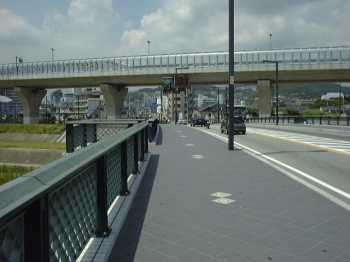 橋の中央から川西市。阪神高速池田線をくぐって西へ。 |