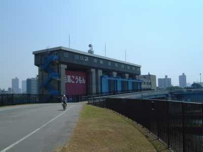 気楽にスタートできます。自宅から十三大橋までは、30分ほど。十三大橋の川下側の歩道を左岸に渡りきったところで、土手下の河川敷内の自転車・歩行者専用道に降り、今日はそこから大阪湾へ向って、河川敷内の道が途切れるところまで走って