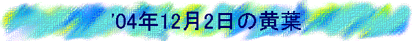 2004年12月2日(木曜日)。 近所の公園のイチョウとケヤキが綺麗に色付きました。今年は、プラタナスなどは、色付かないまま早々と散ってしまったのに、このところの朝の冷え込みのお蔭か、急にイチョウが黄色になりました。期待していなかっただけに、なかなかのものです。花ではなくて、葉ですが、番外編と言うことで。