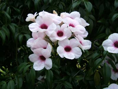 2007年6月21日(木曜日)。近所の公園(上坂部西公園)で見かけたアメリカデイゴとパンドレア。近所の家の前のノウゼンカズラとクチナシ。